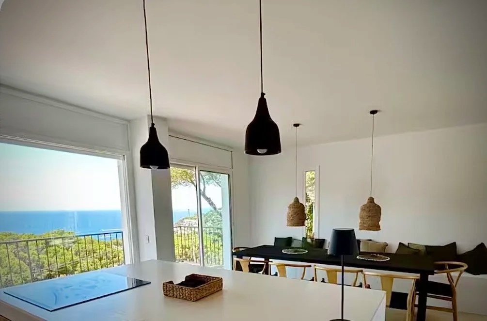 Cuisine ouverte avec vue sur mer . A votre disposition barbecue au gaz, Nespresso et tout le nécessaire pour cuisiner. Parce que nous savons que pour 10 personnes un réfrigérateur ne suffit pas , nous en avons installé 2 . Egalement disponibles un lave linge et sèche linge